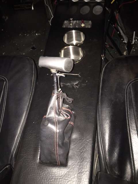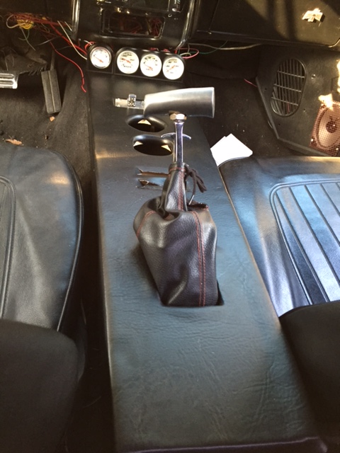 Had someone make a shifter boot for me to cover the existing 7.5 inch by 3.75 inch hole left in console after the trans conversion. Didn't like the look of it at all so I took it out.