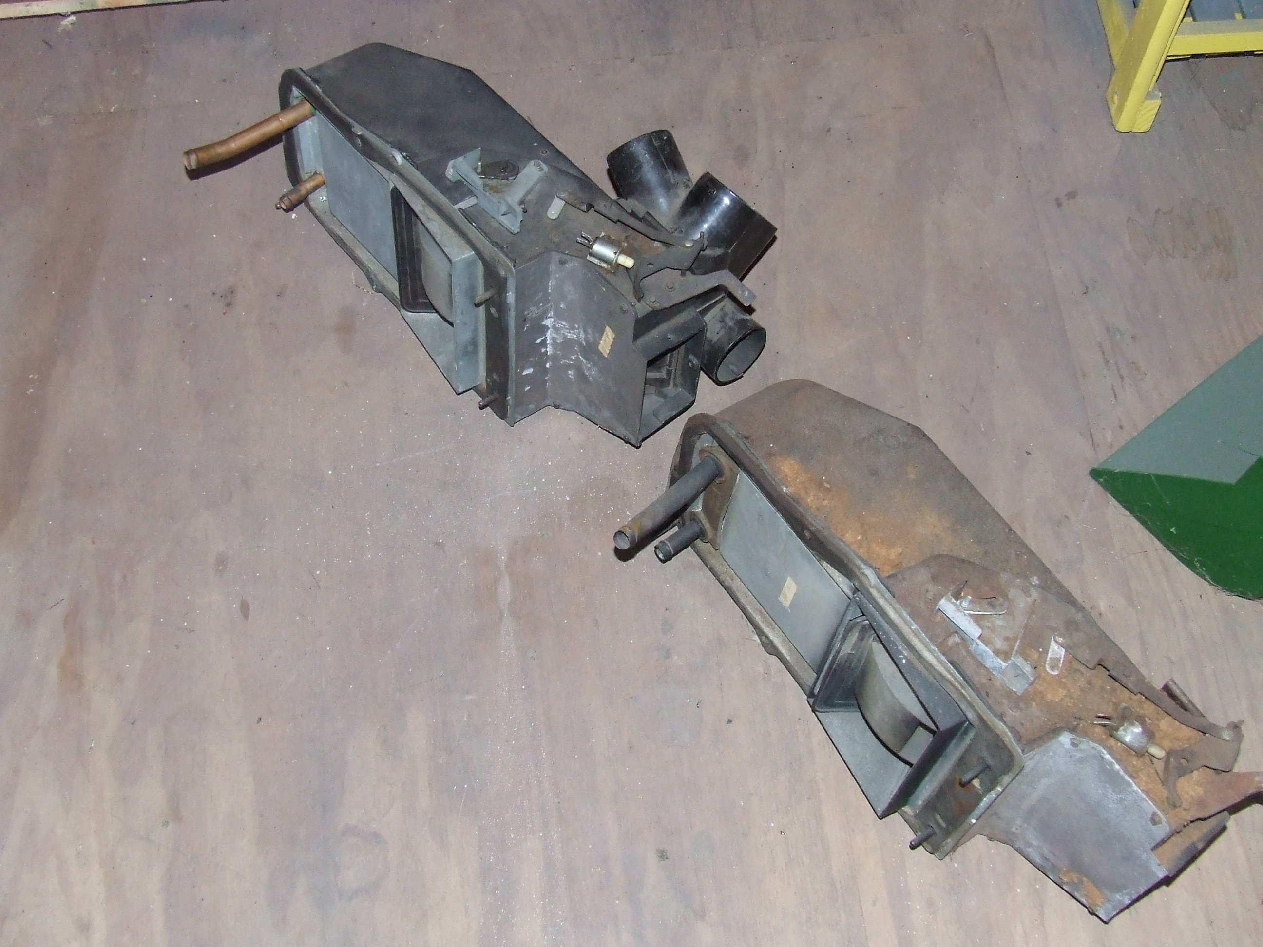 I have two (2) firewall and interior Air Conditioning boxes that were removed from two different 68 Firebird's. They are mostly complete. One is missing some of the interior ductwork and heater resistor. Also have all the additional parts to install air conditioning (vacuum actuators, etc.). $200 + shipping for one interior box and one engine compartment box or local pickup. First buyer gets choice of which box set they want.