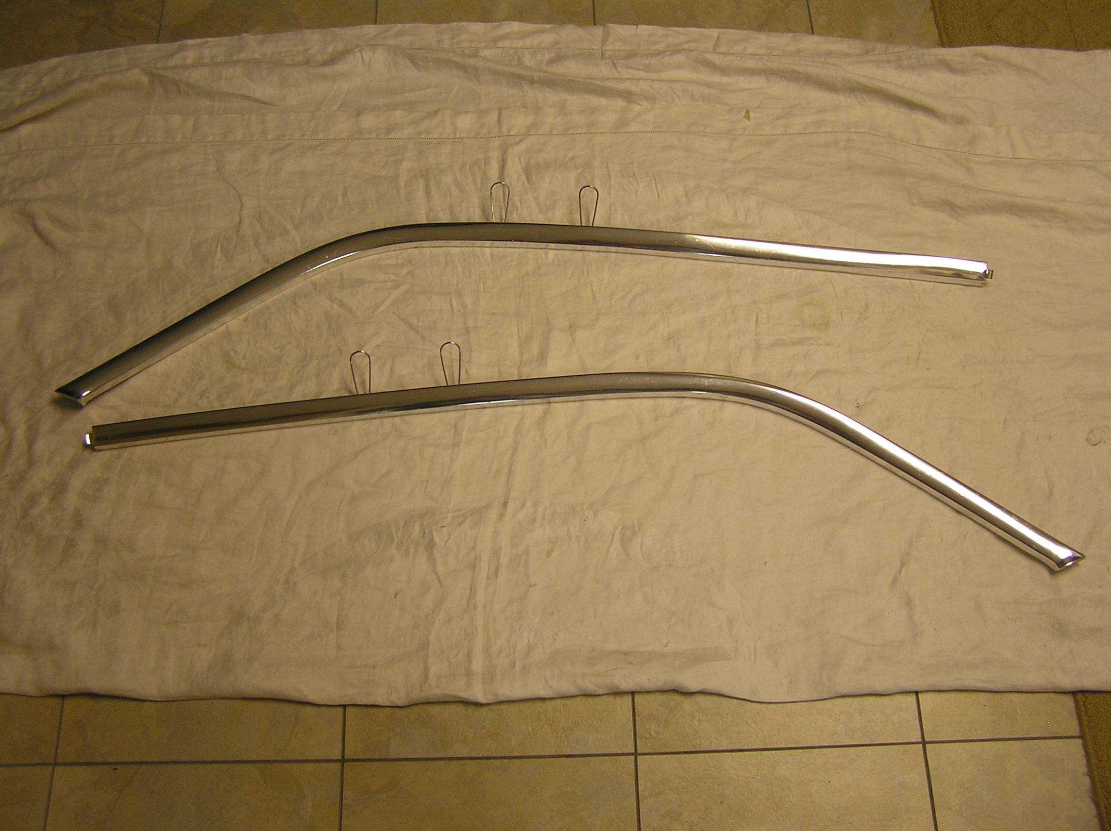 Very nice set removed from a 68 Firebird with deluxe interior 30 years ago and properly stored all this time. Should fit other years but I'm not 100% sure. Trim pieces also come with the stainless shoulder belt holders and the rear mounting clip. Both are in very nice condition with some light scratches. There is a very small ding on the driver's side between the two shoulder belt holders-see picture. These trim pieces should clean up and polish out nicely. You know that these originals will fit like they should. $175.00 plus shipping. Call or text 413-262-3445, Jim.