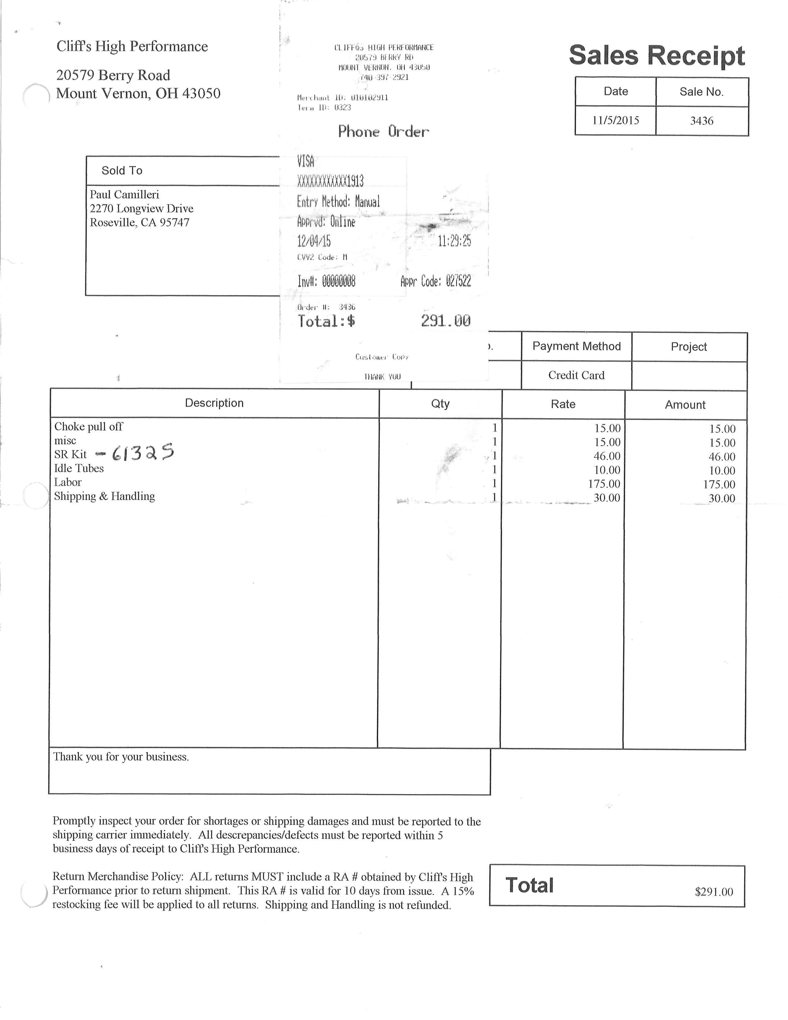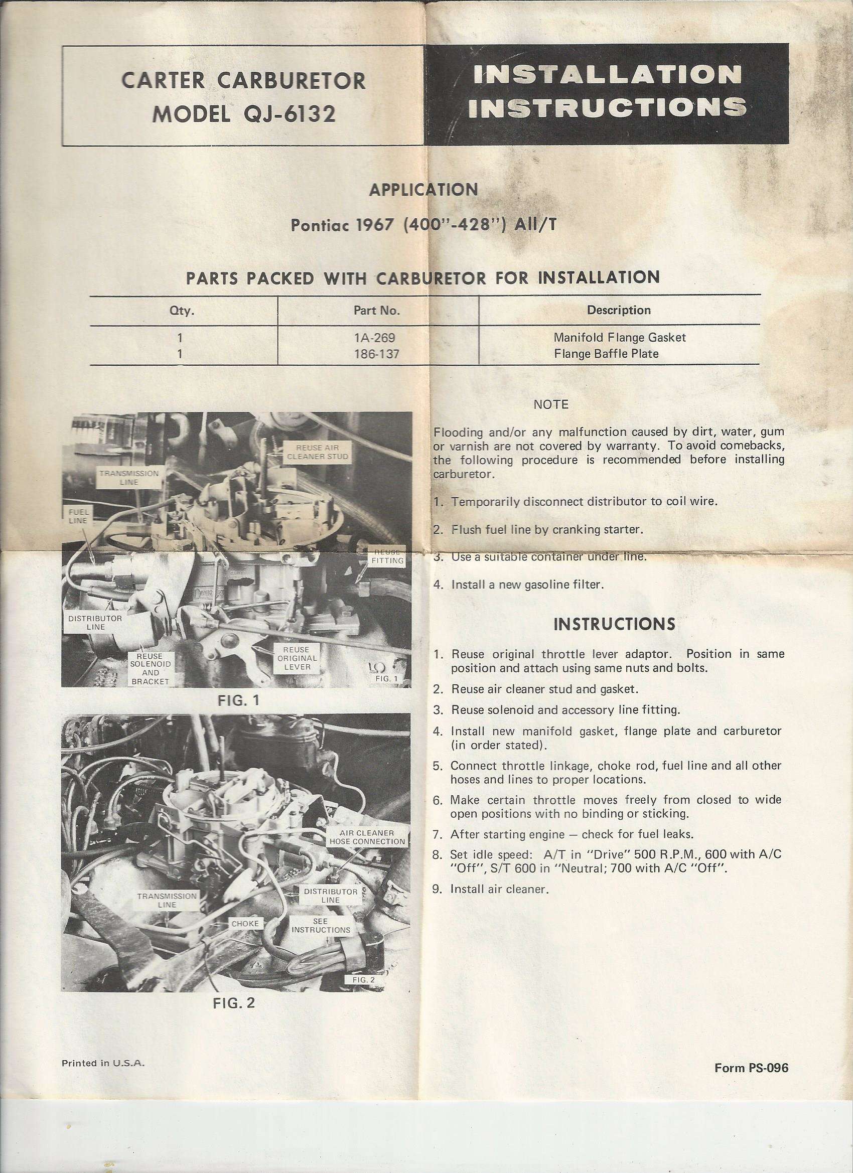 Rare, vintage, Carter Quadrajet 4BL MT service replacement carburetor. Carter produced these as a new aftermarket replacement for Rochester Quadrajets. On 11/05/15. Cliff’s High Performance out of Ohio rebuilt this carburetor for $291. See attached picture of receipt. This carburetor was purchased new in box never opened approximately five years ago. I took it out of the box to see how it ran on my Firebird, then took it off after less than five minutes of idling. Never used again. I wanted this as a backup carburetor for my Firebird, so I sent it to Cliff’s to be rebuilt. I never thought I sell it, so I threw out the original box (I know that was a really stupid thing to do).