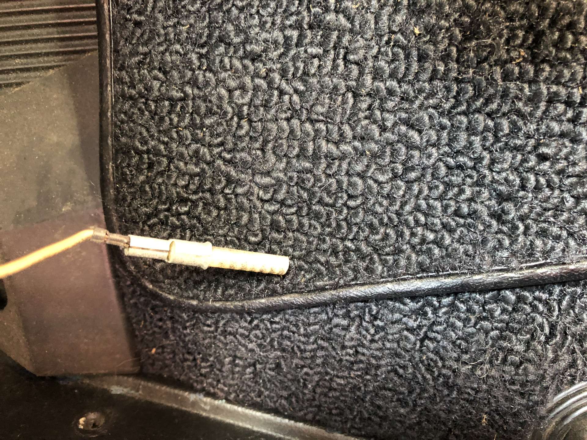 Parking brake switch or courtesy lamp, can't think of any other "1" wire circuits in that area. Does the red BRAKE lamp come on in the cluster when you press the parking brake pedal?