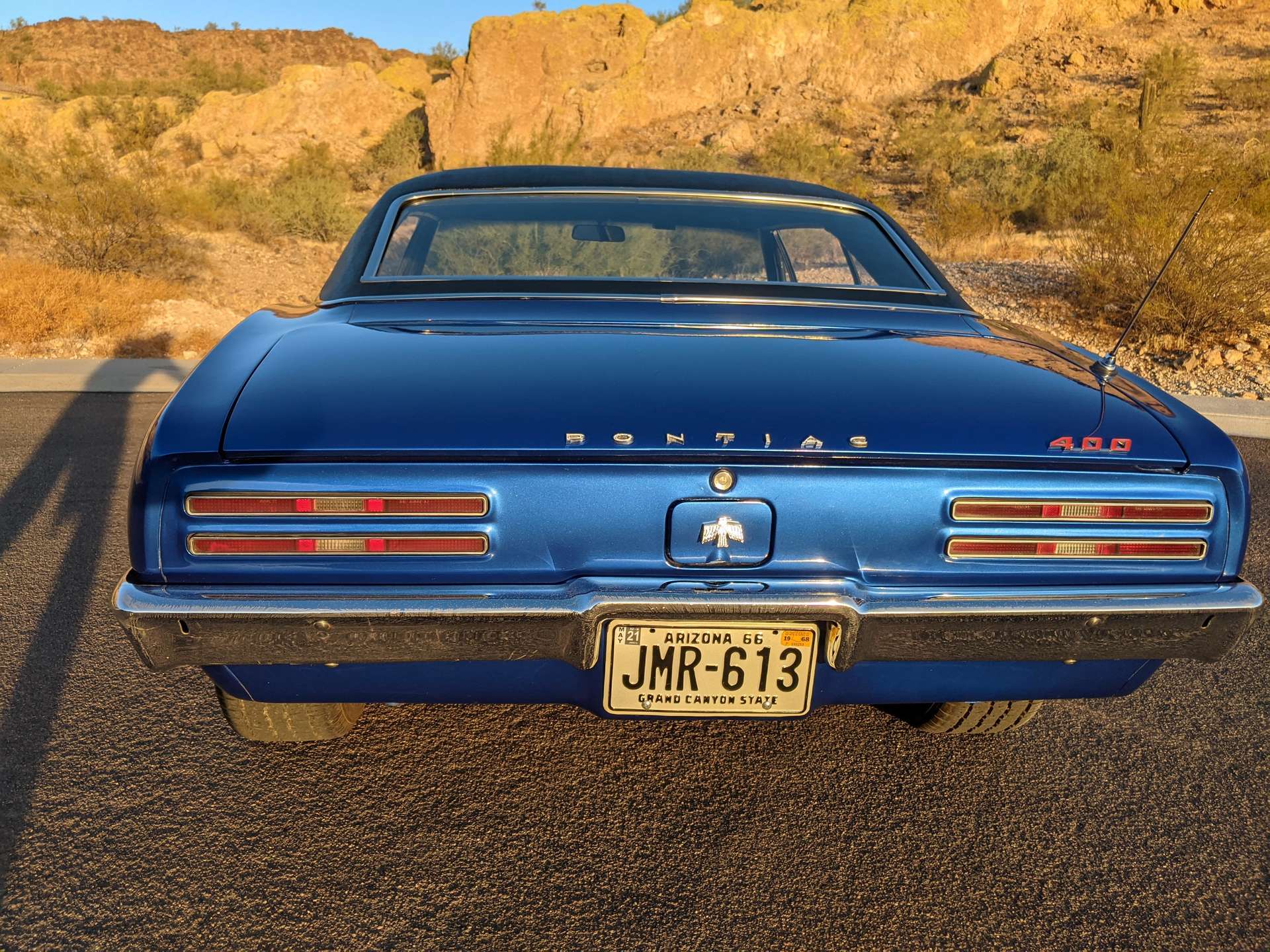 1967 Blue Pontiac Firebird 400 4 speed: Pontiac Historical Society (PHS) Documented classic with date correct, strong running Pontiac Firebird 400 engine, date correct Muncie 4 speed & functioning factory Rally Gauges & factory Hood Tach.