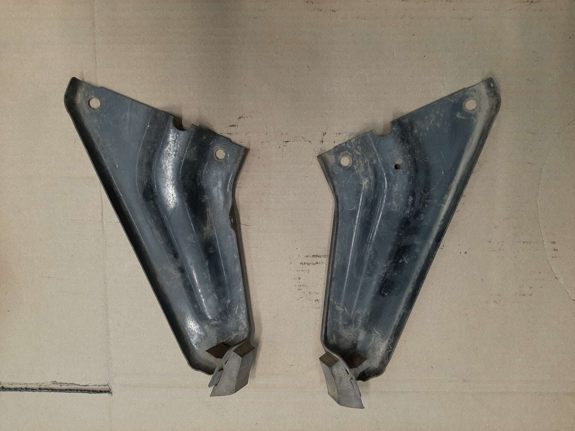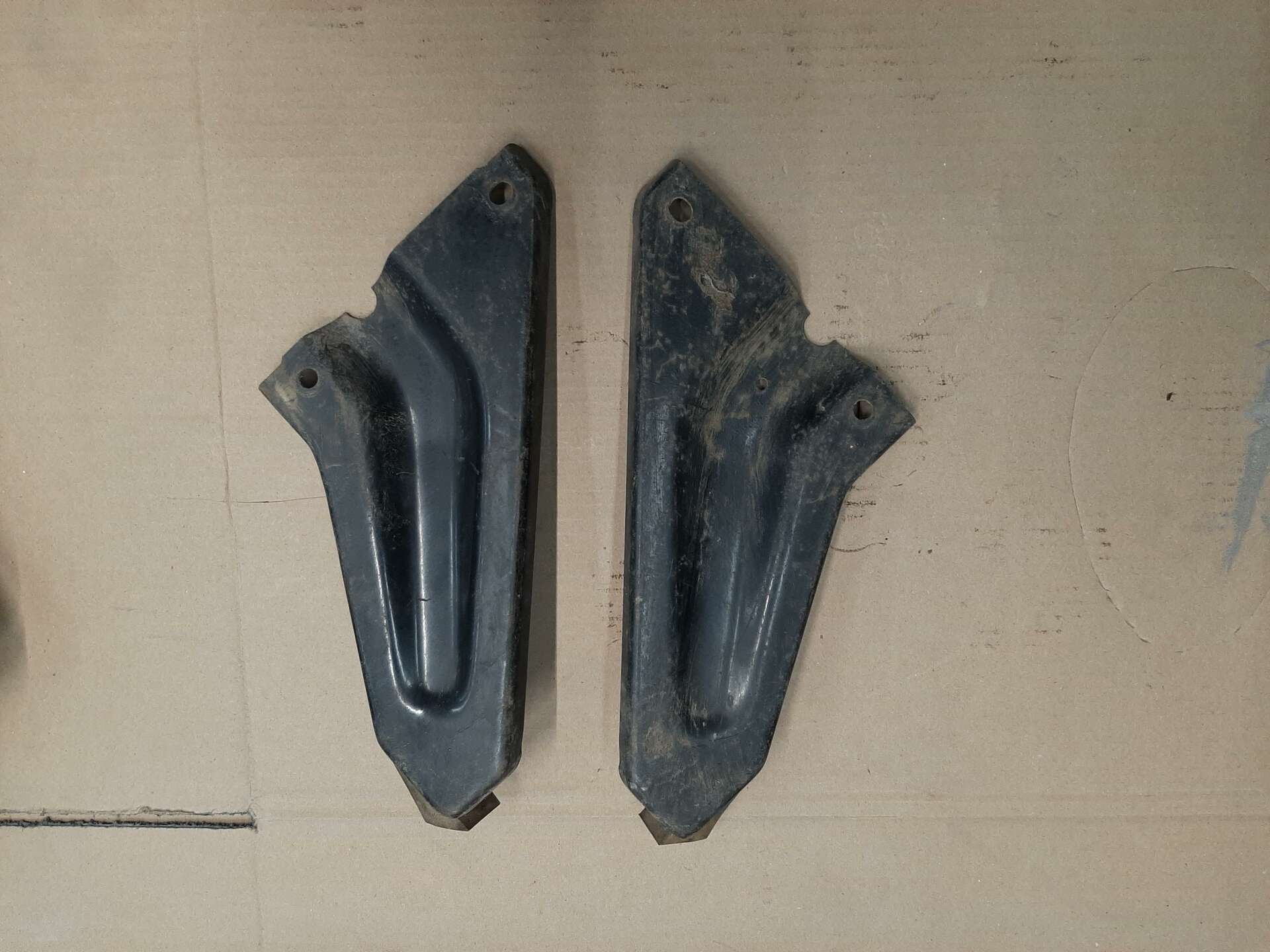 Set of braces for 69 only fenders in good shape. They mount to the outer edges of core support to help support fenders. 40.00 for set of 2 plus shipping.